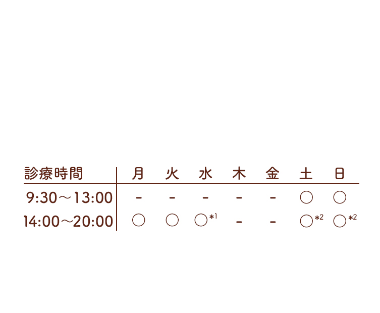 【休診日】木曜・金曜・第二、第四、第五日曜・祝日